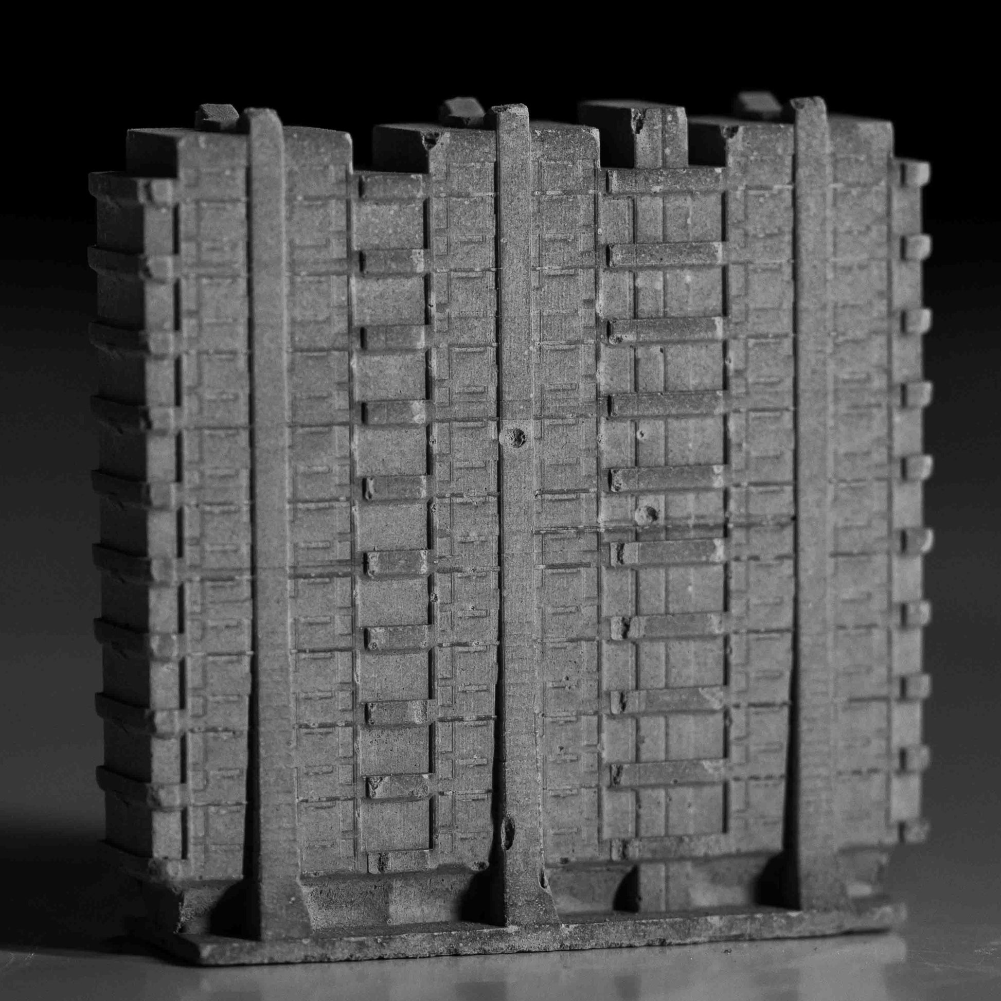 Brief Overview: Queen Elizabeth Square (or Hutchesontown C) was located in the Gorbals, Glasgow which was notorious for poverty and overcrowding- some of the worst conditions in Western Europe at the time. Sir Basil Spence was appointed to design a series of modern high rise towers that would replace the tenement slums- it would be the largest project of it's kind in the UK. Drawing inspiration from Glasgow's rich shipbuilding heritage, and from his trip to Marseille to visit Le Corbusier's iconic Unite d'Habitation- Spence presented visions of Gardens in the Sky- with washing hanging out on balconies to provoke images of ships masks. Sadly the project was a failure- poor construction and poor application of concepts for climate meant Queen Elizabeth Square suffered from flooding, asbestos and increasing levels of crime. After another flood in 1989, many residents chose to be rehoused rather than return once repairs had been made, and eventually in 1993 Queen Elizabeth Square was demolished.