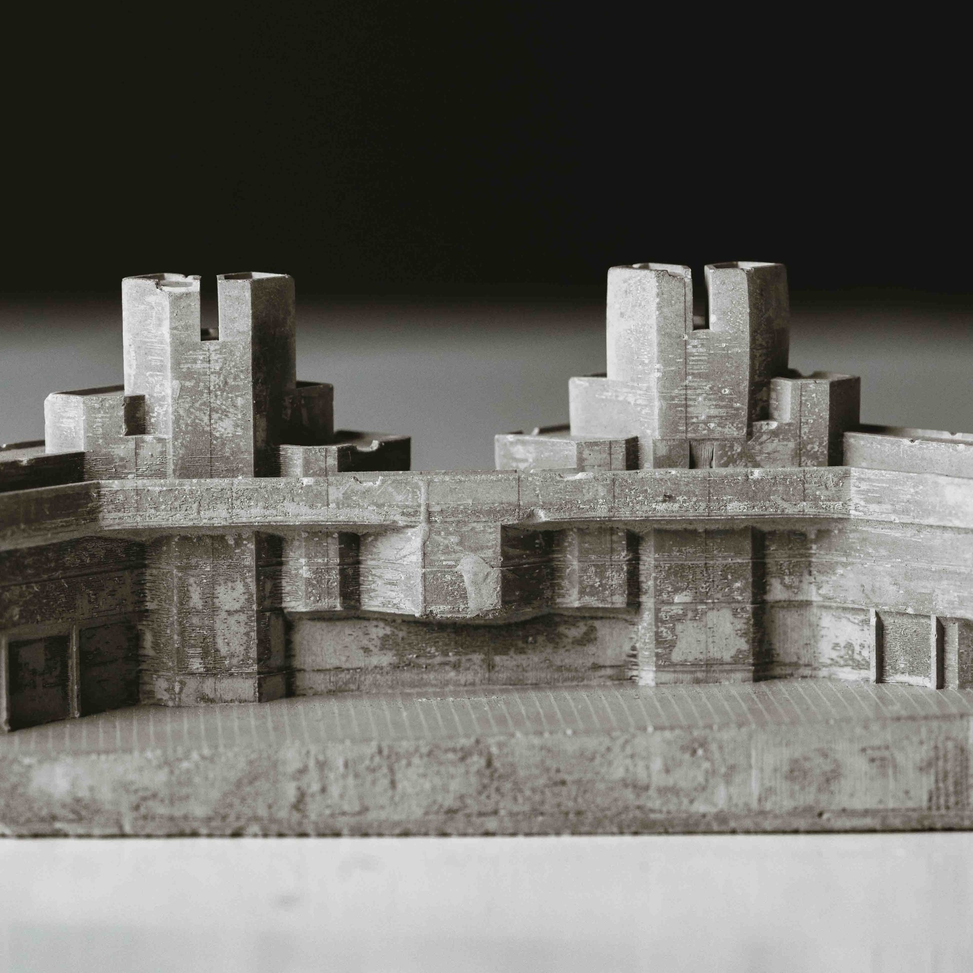 This model celebrates their distinctive rhythm. The stepped profile, the deep shadow lines, and the balance of mass and openness had to be carefully scaled down to preserve their character. It was important to me that the cast felt both geometric and humane, like the original buildings themselves.