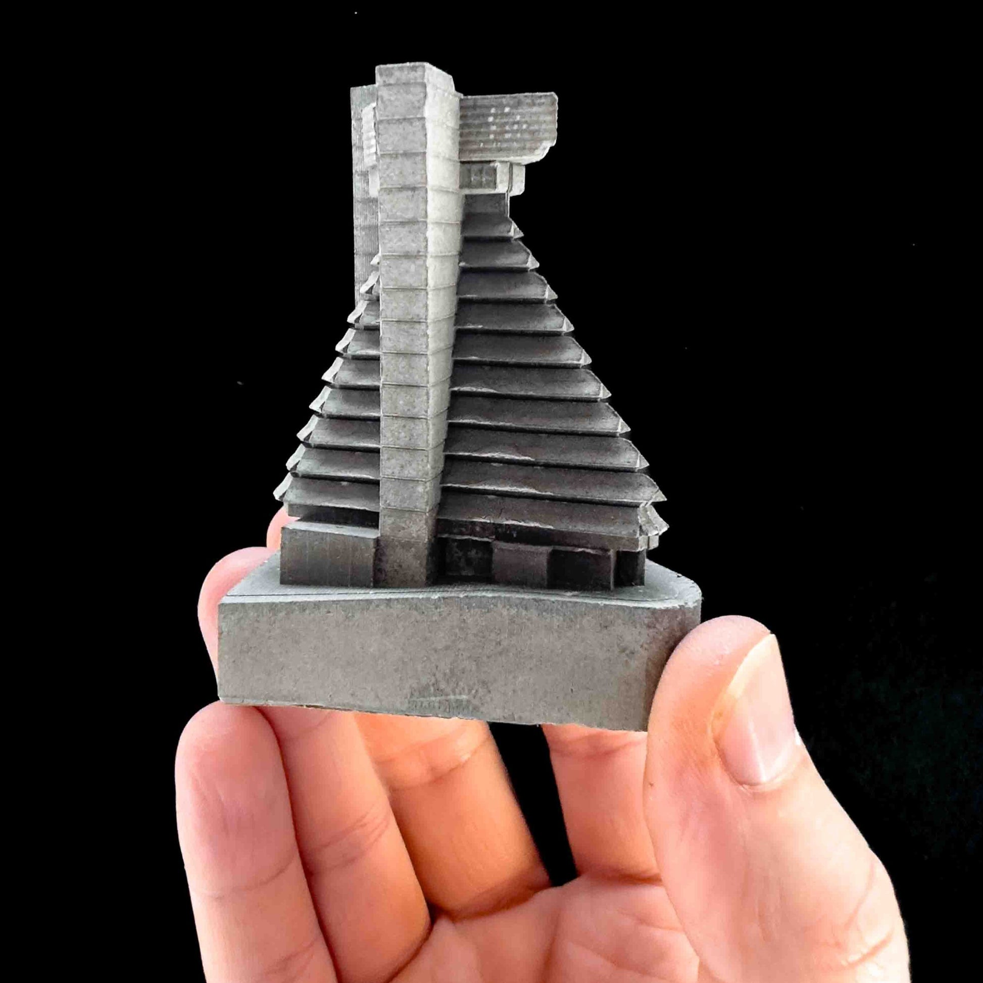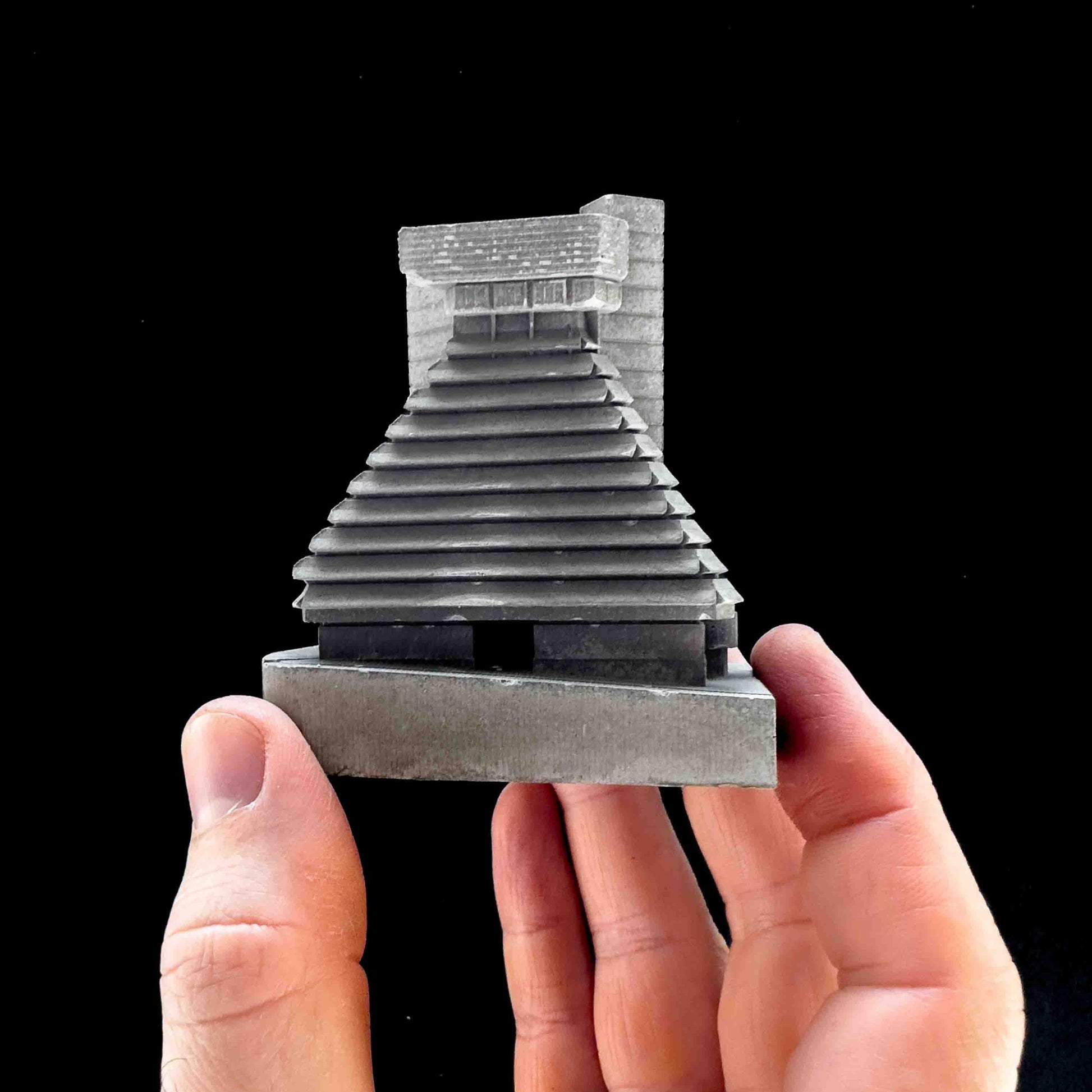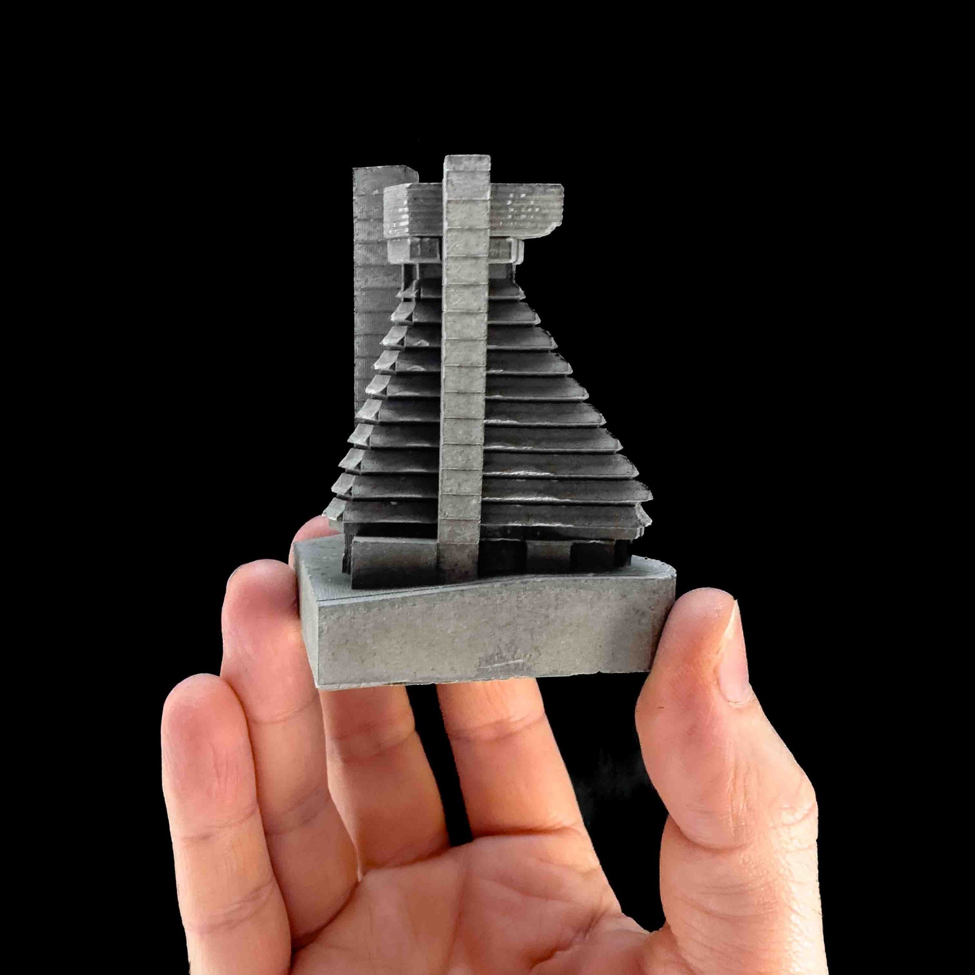 This model focuses on its tiered geometry. Each stepped level, open terrace, and structural rhythm was carefully refined at a smaller scale. I wanted the cast to preserve both the building’s monumental balance and the sense of energy that once filled its corridors.