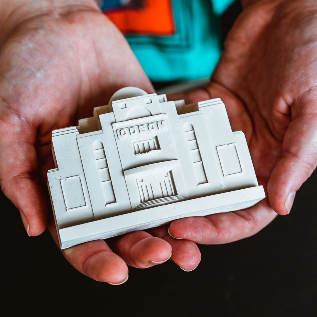 Cast 3D model portraying the architectural design of the entrance facade of The Odeon Perry Barr on Birchfield Road.