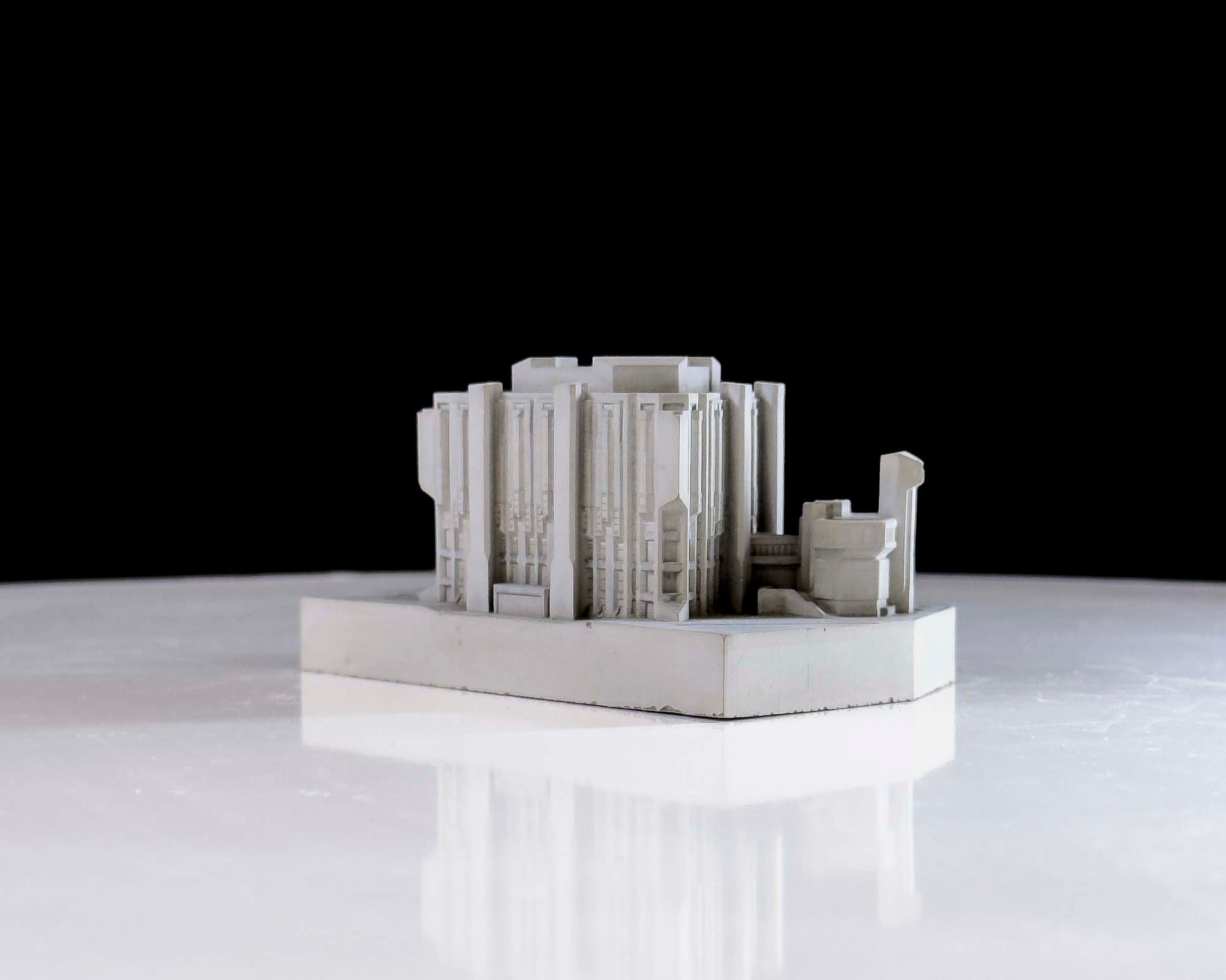 This model captures its abstract mass and layered depth. The sharply faceted corners, cantilevered tiers, and concrete envelope were carefully scaled and simplified to preserve the building’s unique identity. I wanted the model to reflect both its intellectual weight and physical complexity.