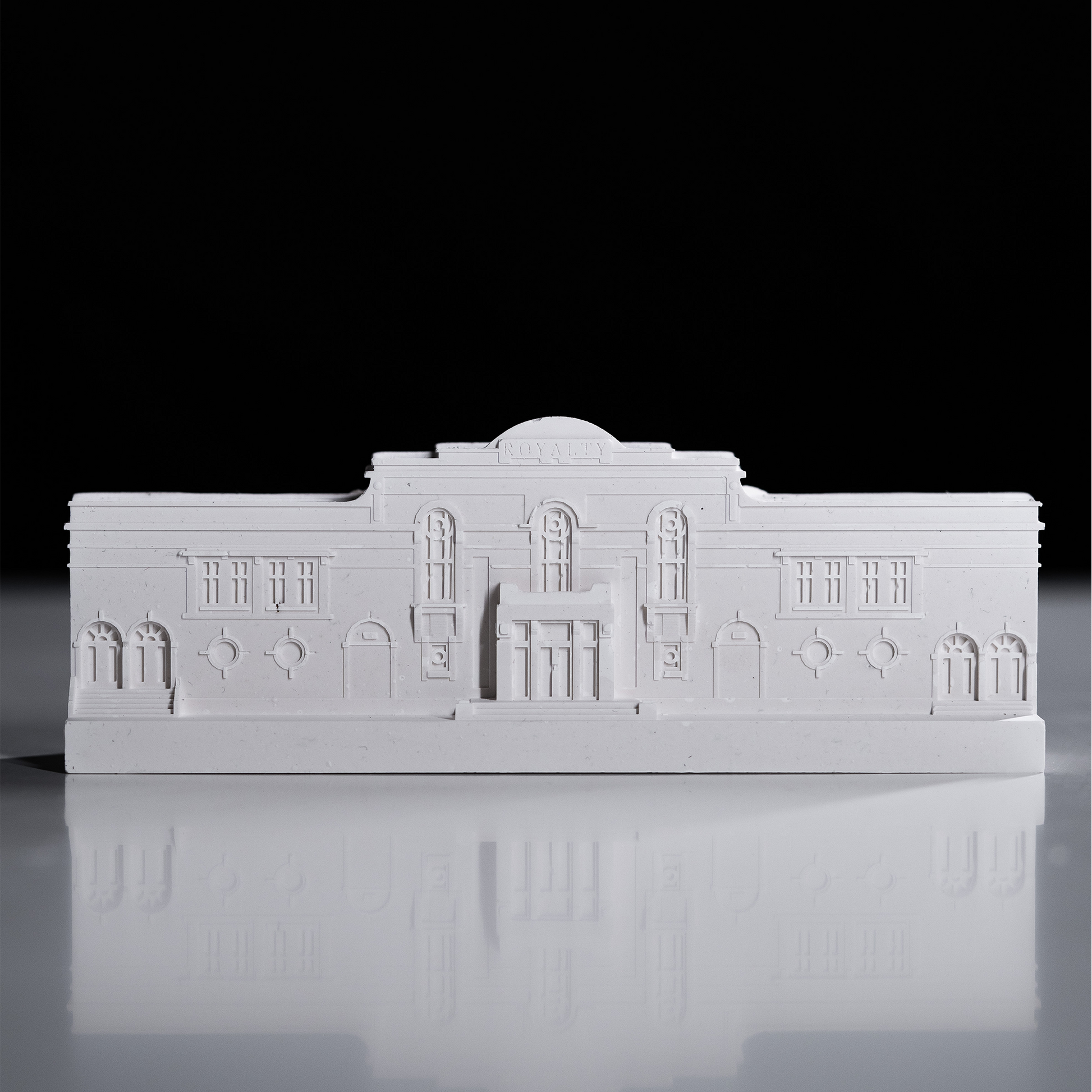Cast 3D model portraying the architectural design of the entrance facade of The Royalty on Harborne High Street